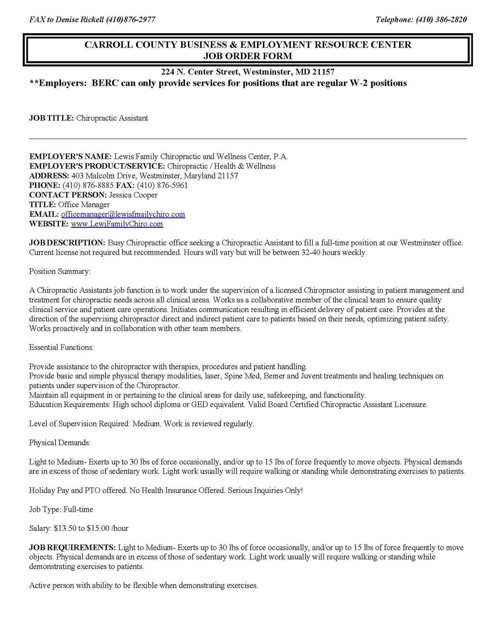 Carroll County Workforce Development On Twitter Hiring Lewis Family Chiropractic And Wellness Center P A Westminster Md Seeking Chiropractic Assistant Ft 13 50 15 Hr And Front Desk Receptionist Part Time 12 14 Hr See Job Flyers For Info